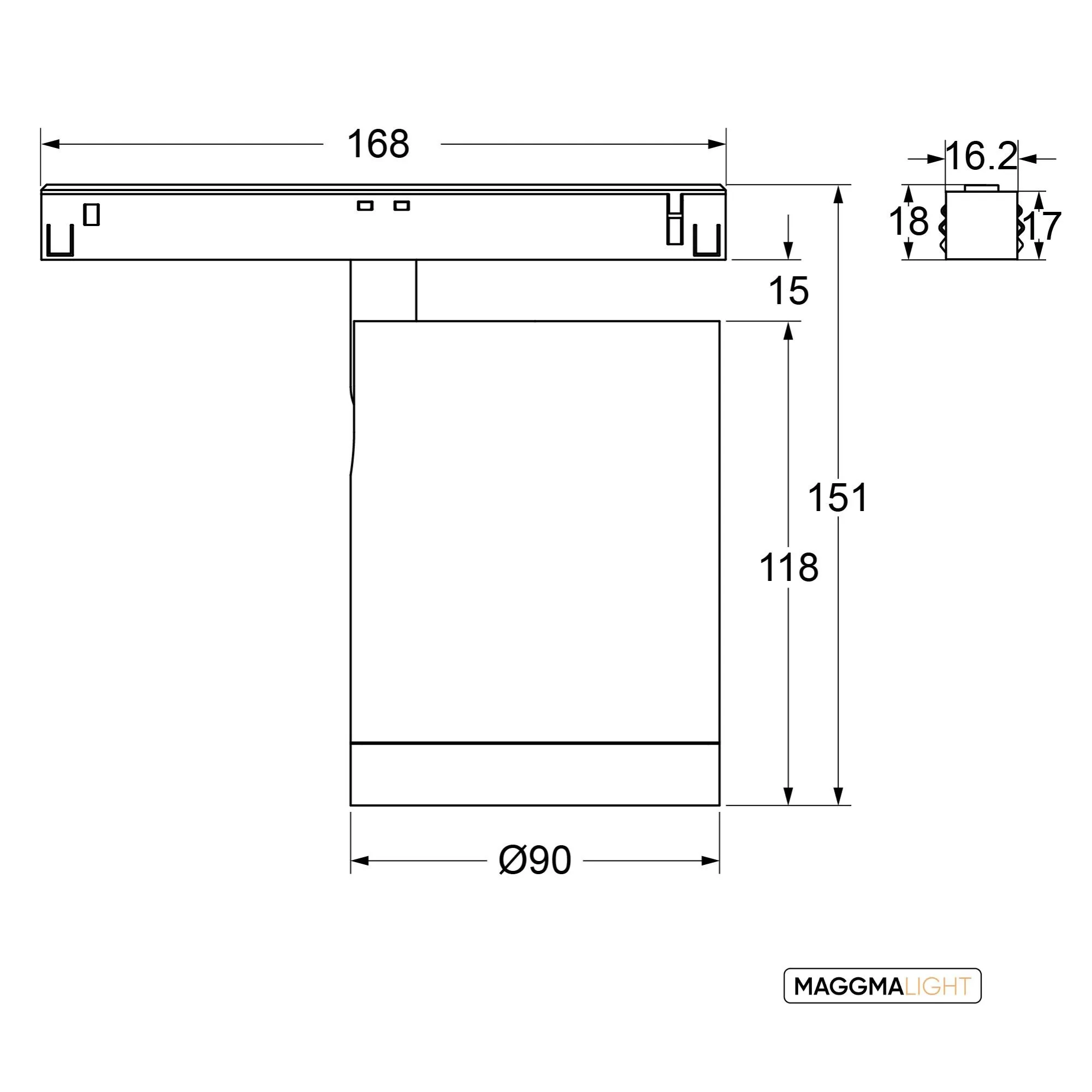 Dimensions : Ø90mm × H118mm